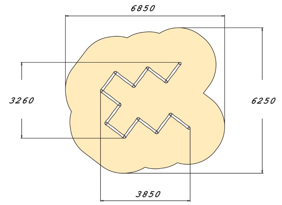 – це доріжка з 12 балок, розміщених на висоті 560 мм у формі зигзагу. Проходження цього треку буде цікавою розвагою і розвиватиме у дітей почуття рівноваги та моторику.
