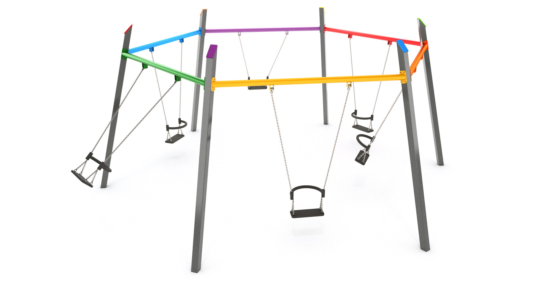 Матеріали стандартної комплектації: Несуча конструкція: виготовлена з чорної сталі IS235JR. Сидіння з алюмінієвою конструкцією, покритим м’ягкою гумою EPDM Спинка гойдалки виготовлена зі сталі,вкритої м’яким поліуретаном. Гойдальні ланцюги з двома підшипниками. Кріплення стандартної комплектації: Бетонування конструкції в грунт на глибину 55 см. Можливі комплектації: Безпечне сидіння з конструкцією комбінування алюмінію та нержавіючої сталі, покрите м’яким поліуретаном. Спинка сидіння зі сталевою конструкцією, покрите м’яким поліуританом. Сидіння з конструкцією алюмінію та нержавіючої сталі. |