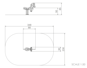 Матеріали стандартної комплектації: Кольорові елементи виготовлені з тришарового HDPE матеріалу товщиною 15мм Пружина виготовлена з пружинної сталі З’єднувальні елементи, такі як гвинти, гайки та шайби, виготовлені з нержавіючої сталі. Ручка виготовлена з литого під тиском поліаміду. Кріплення стандартної комплектації: Бетонування конструкції в грунт на глибину 55 см. |