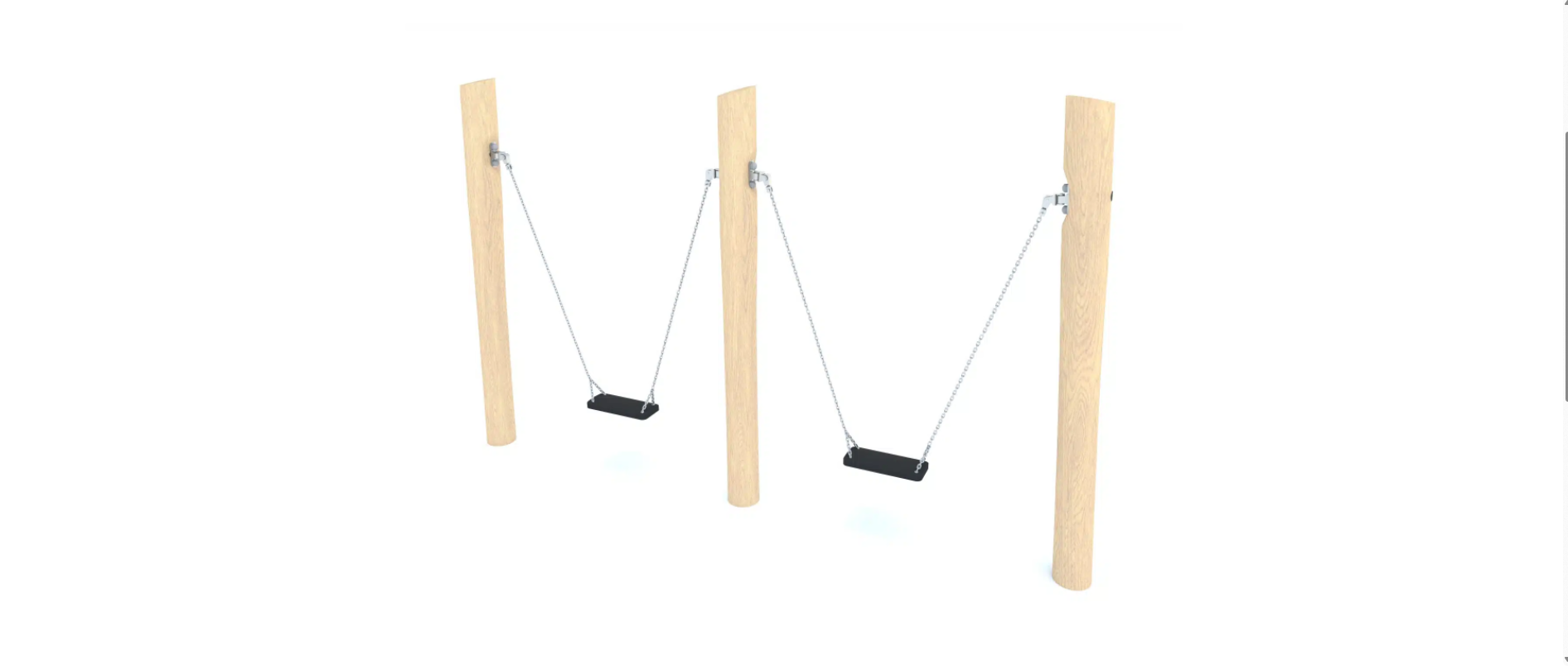 Матеріал стандартної комплекції: Конструкція виготовлена з натуральної деревини робінії Сидіння виготовлені з алюмінієвої конструкції, покритої м’якою EPDM-гумою Ланцюги виготовлені з нержавіючої сталі 6 мм Кріплення стандартної комплектації: Бетонування конструкції в грунт на глибину 55 см. |