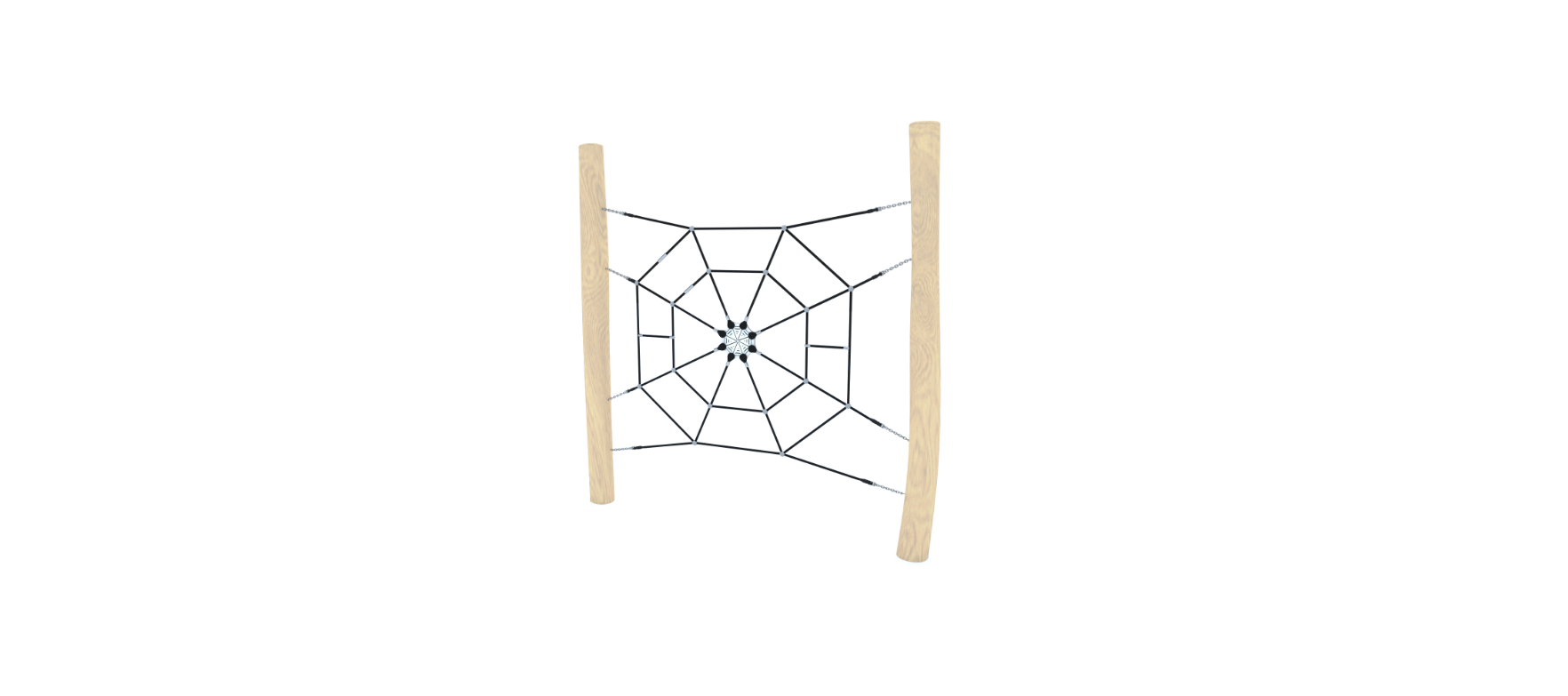 Матеріали стандартної комплектації: Несуча конструкція: сталь Елементи виготовлені з натуральної деревини робінії Кінцеві частини троса запресовані в гільзу з високоміцного алюмінієвого сплаву Канати виготовлені з поліпропілену Ланцюги виготовлені зі сталі Канатні з’єднувачі виготовлені з поліаміду Кріплення стандартної комплектації: З бетонуванням в грунт на глибину 55 см. Додаткові опції: Несуча конструкція виготовлена зі сталі AISI304 , очищеної методом піскоструминної обробки Канати типу PP multisplit зі сталевим осердям, діаметр — 16 мм Ланцюги виготовлені з нержавіючої сталі діаметром 6 мм Естетичні канатні з’єднувачі , виготовлені методом лиття під тиском Кінці троса, запресовані в гільзу з міцного алюмінієвого сплаву. |