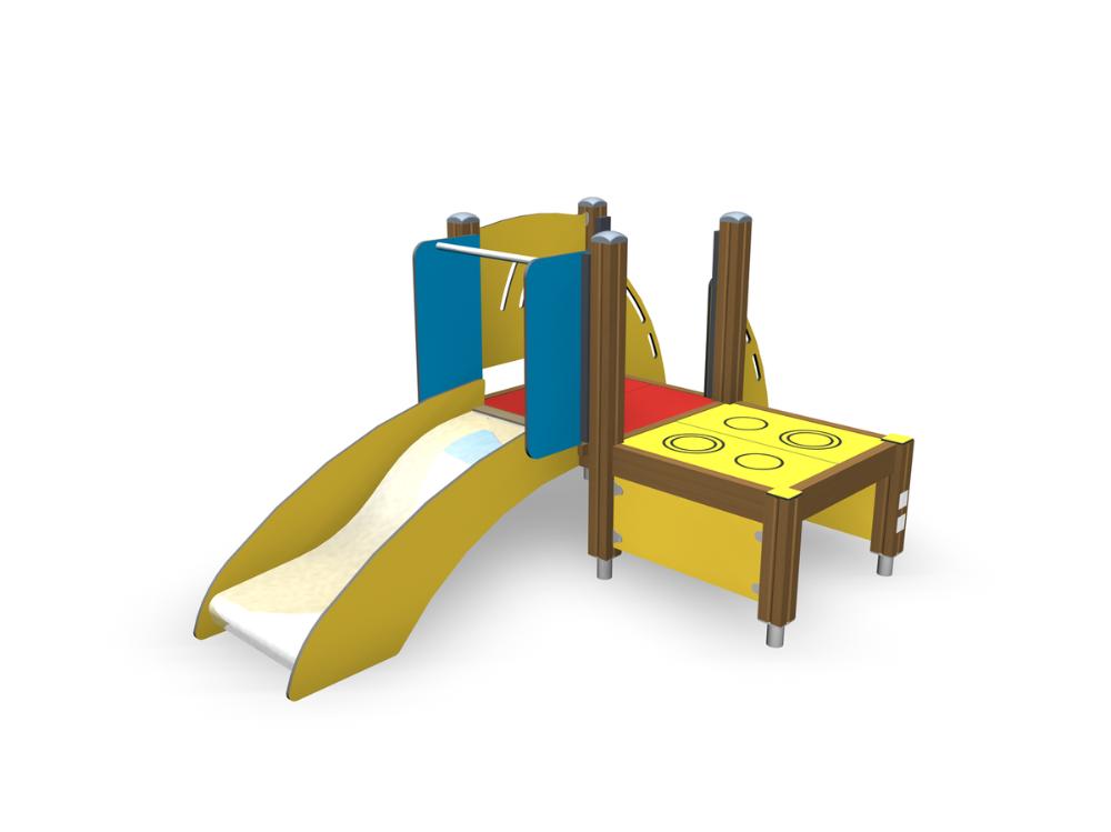 – майданчик для маленьких дітей. Оснащений гіркою та столиком для ігор.