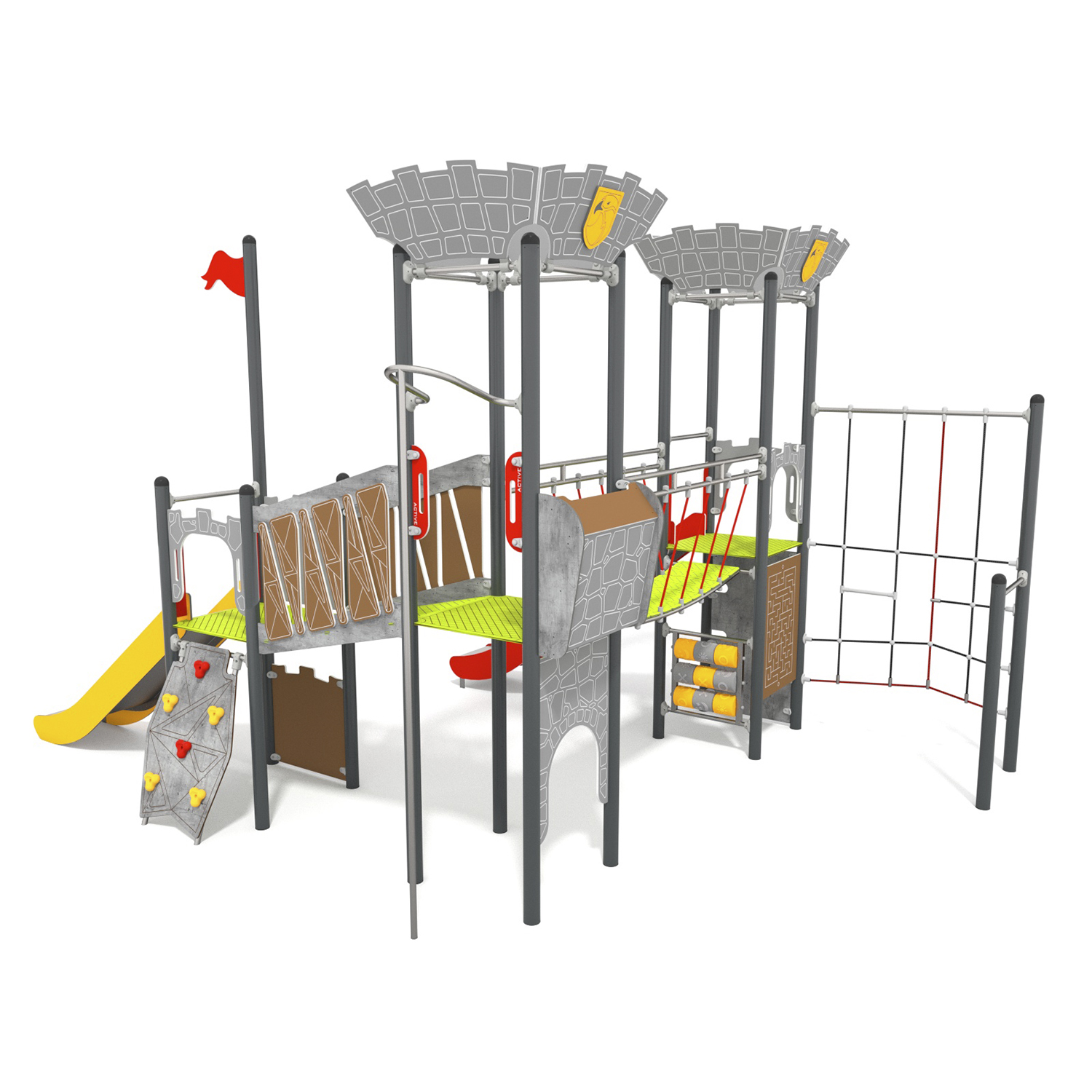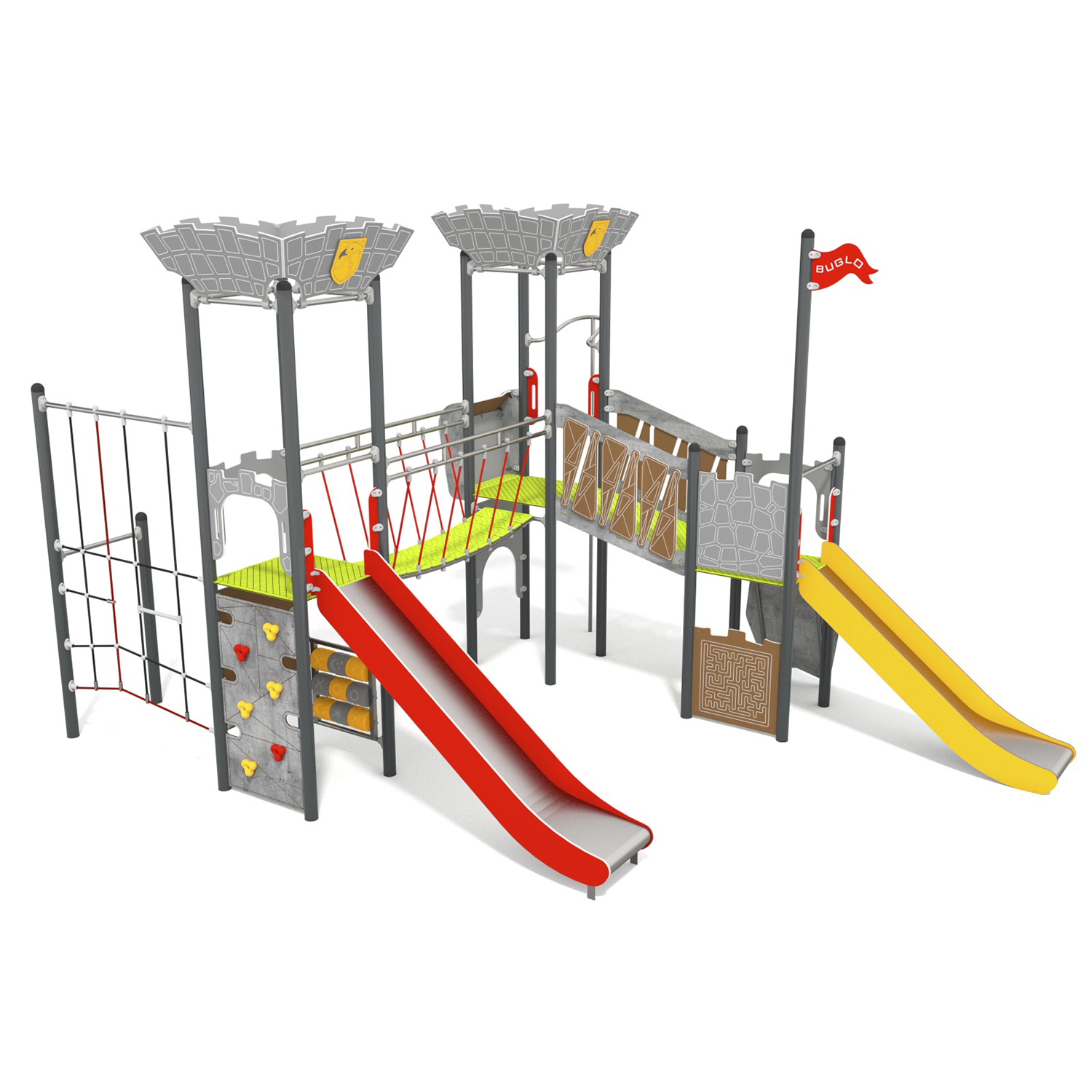 Матеріали стандартної комплектації: Несуча конструкція: нержавіюча сталь AISI304 Платформа: HPL плита Кріплення стандартної комплектації: З бетонуванням в грунт на глибину 55 см. Додаткові опції: Гірки виготовлені з нержавіючої сталі. Стінові панелі з кольорового тришарового поліетилену HDPE Міцна конструкція з нержавіючої сталі AISI304 повністю стійка до погодних умов. З’єднувачі для пластин і мотузок виготовлені з поліаміду, формованого під тиском. Поліпропіленові канати діаметром зі сталевим сердечником. |