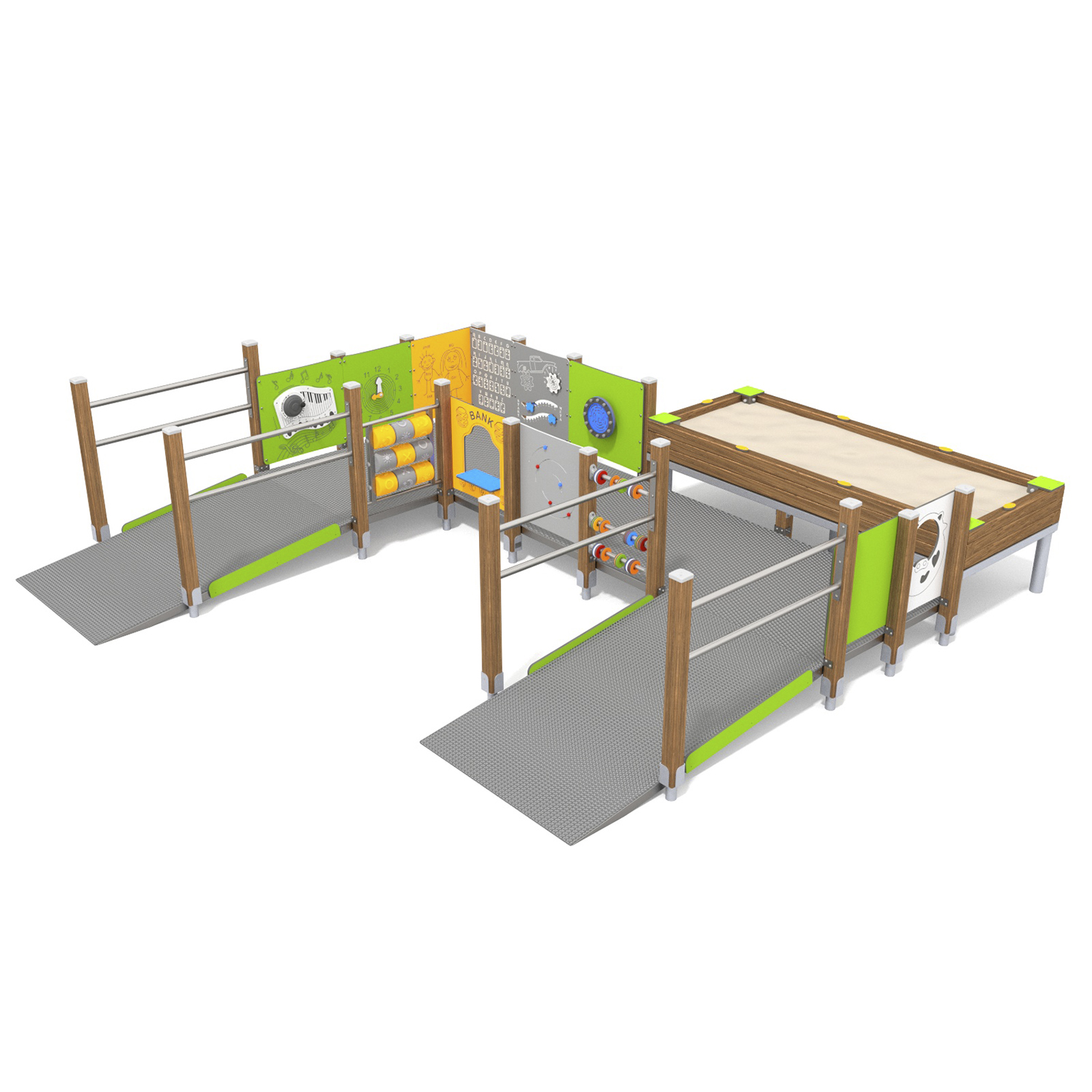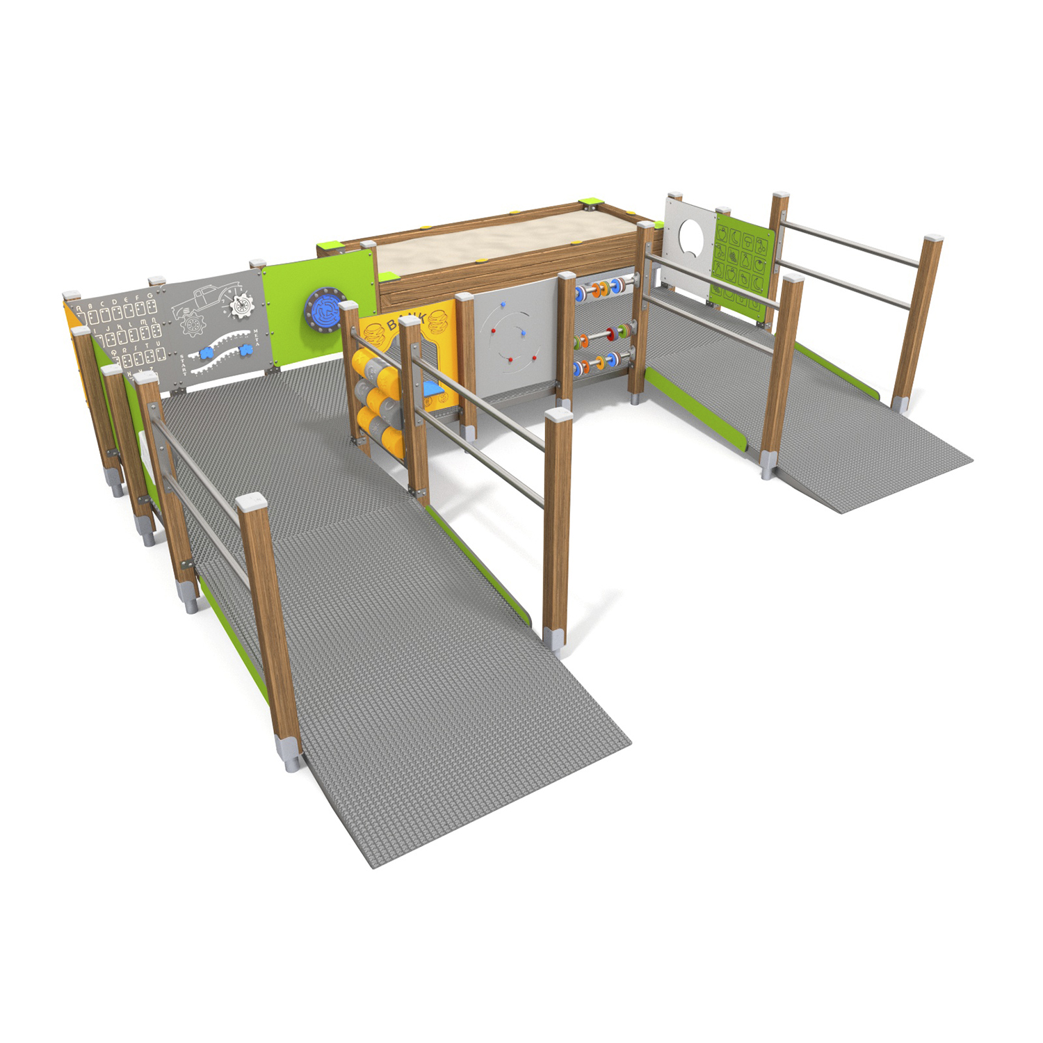 Матеріали стандартної комплектації: Несуча конструкція: деревина. Бічні панелі з тришарового поліетилену HDPE. Платформи виготовлені з нековзкої плити HPL. Кріплення стандартної комплектації: Бетонування конструкції в грунт на глибину 55 см. Додаткові опції: Стійки, поручні та драбини виготовлені з чорної сталі S235JR з порошковим покриттям. Відкриті слайди з нержавіючої сталі AISI304. Стіни для скелелазіння виготовлені з неслизької пластини. Камені для скелелазіння, виготовлені із суміші наповнювачів і кольорових поліефірних смол. Сталева гірка з нержавіючої сталі з боковими пластинами з поліетилену. Усі гвинти, що піддаються атмосферним впливам, виготовлені з нержавіючої сталі. |