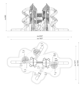 Матеріал стандартної комплекції: Міцна конструкція виготовлена зі сталі AISI304 Гірки-труби виготовлені з нержавної сталі AISI 304 Система з’єднувачів і затискачів, виготовлених із міцних алюмінієвих сплавів Опори виготовлені з натуральної деревини робінії Гірка виготовлена зі сталі AISI304 Панелі стін, виготовлені з кольорового тришарового поліетилену HDPE товщиною 15 мм Елементи виготовлені з кольорового HPL товщиною 13 мм найвищої якості Канати виготовлені з поліпропілену Посилена гума товщиною 10 мм з нековзною поверхнею. Панелі з полікарбонату з прямим друком. Робінія, пофарбована спеціальною водною фарбою швидкого висихання, паропроникною, що забезпечує напівглянцеве покриття. Елементи виготовлені з кольорового полікарбонату товщиною 5 та 12 мм. Кріплення стандартної комплектації: Бетонування конструкції в грунт на глибину 55 см. Додаткові опції: Міцна конструкція виготовлена зі сталі AISI304,очищеної методом піскоструминної обробки. Гірки-труби виготовлені з нержавної сталі AISI 304, очищеною методом піскоструминної обробки. Гірка виготовлена зі сталі AISI304.Лист товщиною 2мм. Робінія, пофарбована спеціальною водною фарбою, що швидко висихає, паропроникною, яка забезпечує напівглянцеве покриття. Панелі стін, виготовлені з кольорового тришарового поліетилену HDPE товщиною 15 мм мм найвищої якості, повністю вологостійкі та стійкі до ультрафіолетового випромінювання. Поліпропіленові канати типу PP-Multisplit зі сталевим осердям діаметром 16 мм Елементи повністю вологостійкі та стійкі до ультрафіолетового випромінювання. |