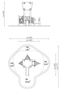 Матеріал стандартної комплекції: Міцна конструкція виготовлена зі сталі AISI304 Система з’єднувачів і затискачів, виготовлених із міцних алюмінієвих сплавів Опори виготовлені з натуральної деревини робінії Скелелазні зачепи, виготовлені із суміші мінеральних наповнювачів та кольорових поліефірних смол Дах, виготовлений із кольорового полікарбонату товщиною 12 мм Гірка виготовлена зі сталі AISI304 Панелі стін, виготовлені з кольорового тришарового поліетилену HDPE товщиною 15 мм Канати виготовлені з поліпропілену Кріплення стандартної комплектації: Бетонування конструкції в грунт на глибину 55 см. Додаткові опції: Міцна конструкція виготовлена зі сталі AISI304,очищеної методом піскоструминної обробки. Гірка виготовлена зі сталі AISI304.Лист товщиною 2мм. Робінія, пофарбована спеціальною водною фарбою, що швидко висихає, паропроникною, яка забезпечує напівглянцеве покриття. Панелі стін, виготовлені з кольорового тришарового поліетилену HDPE товщиною 15 мм мм найвищої якості, повністю вологостійкі та стійкі до ультрафіолетового випромінювання. Поліпропіленові канати типу PP-Multisplit зі сталевим осердям діаметром 16 мм |