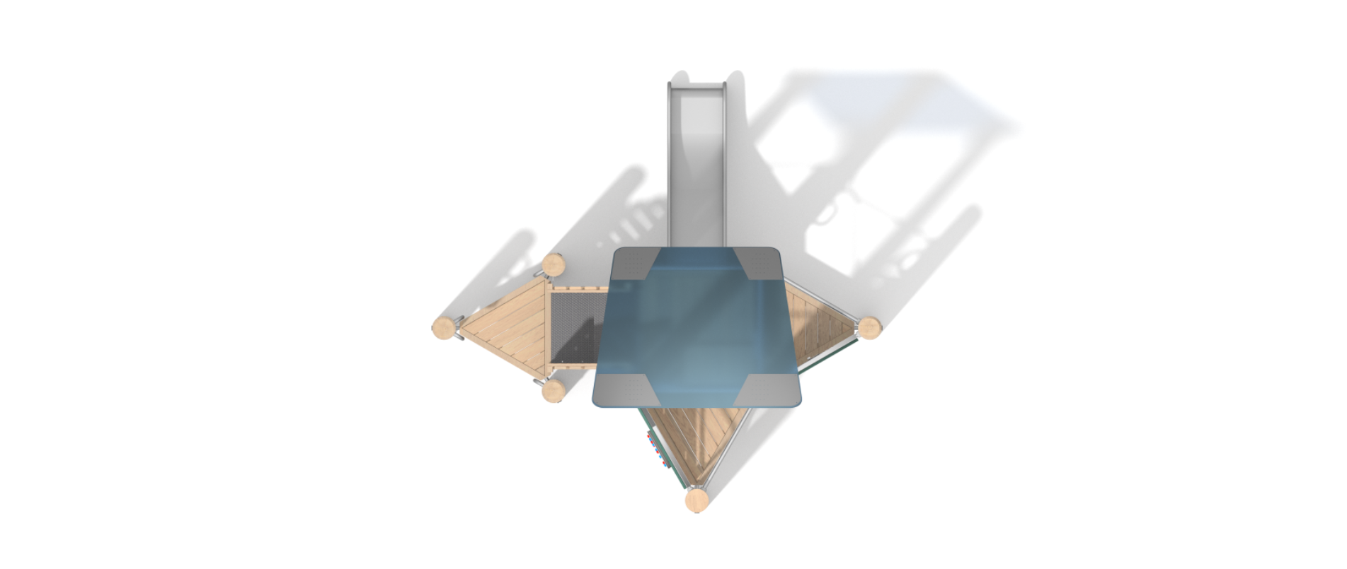 Матеріал стандартної комплекції: Міцна конструкція виготовлена зі сталі AISI304 Система з’єднувачів і затискачів, виготовлених із міцних алюмінієвих сплавів Опори виготовлені з натуральної деревини робінії Скелелазні зачепи, виготовлені із суміші мінеральних наповнювачів та кольорових поліефірних смол Дах, виготовлений із кольорового полікарбонату товщиною 12 мм Гірка виготовлена зі сталі AISI304 Панелі стін, виготовлені з кольорового тришарового поліетилену HDPE товщиною 15 мм Канати виготовлені з поліпропілену Кріплення стандартної комплектації: Бетонування конструкції в грунт на глибину 55 см. Додаткові опції: Міцна конструкція виготовлена зі сталі AISI304,очищеної методом піскоструминної обробки. Гірка виготовлена зі сталі AISI304.Лист товщиною 2мм. Робінія, пофарбована спеціальною водною фарбою, що швидко висихає, паропроникною, яка забезпечує напівглянцеве покриття. Панелі стін, виготовлені з кольорового тришарового поліетилену HDPE товщиною 15 мм мм найвищої якості, повністю вологостійкі та стійкі до ультрафіолетового випромінювання. Поліпропіленові канати типу PP-Multisplit зі сталевим осердям діаметром 16 мм |