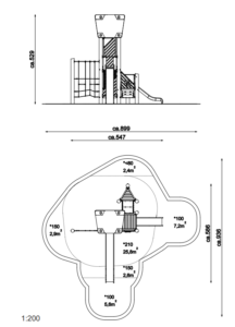 Матеріал стандартної комплекції: Міцна конструкція виготовлена зі сталі AISI304 Система з’єднувачів і затискачів, виготовлених із міцних алюмінієвих сплавів Опори виготовлені з натуральної деревини робінії Скелелазні зачепи, виготовлені із суміші мінеральних наповнювачів та кольорових поліефірних смол Дах, виготовлений із кольорового полікарбонату товщиною 12 мм Гірка виготовлена зі сталі AISI304 Панелі стін, виготовлені з кольорового тришарового поліетилену HDPE товщиною 15 мм Канати виготовлені з поліпропілену Кріплення стандартної комплектації: Бетонування конструкції в грунт на глибину 55 см. Додаткові опції: Міцна конструкція виготовлена зі сталі AISI304,очищеної методом піскоструминної обробки. Гірка виготовлена зі сталі AISI304.Лист товщиною 2мм. Робінія, пофарбована спеціальною водною фарбою, що швидко висихає, паропроникною, яка забезпечує напівглянцеве покриття. Панелі стін, виготовлені з кольорового тришарового поліетилену HDPE товщиною 15 мм мм найвищої якості, повністю вологостійкі та стійкі до ультрафіолетового випромінювання. Поліпропіленові канати типу PP-Multisplit зі сталевим осердям діаметром 16 мм |