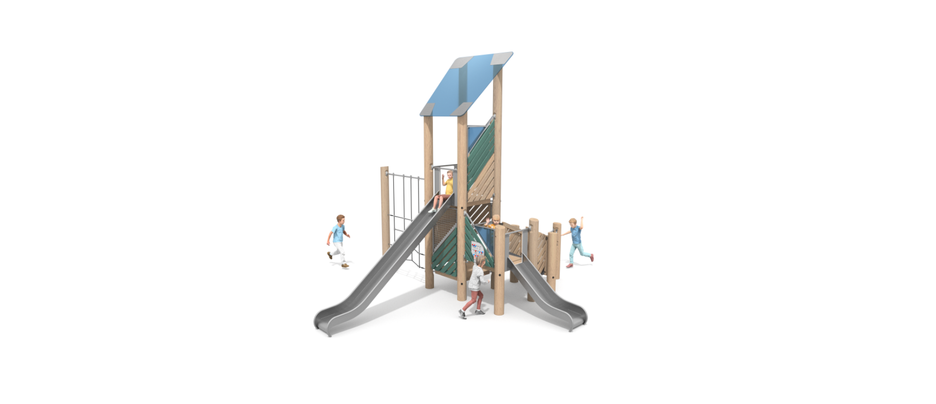 Матеріал стандартної комплекції: Міцна конструкція виготовлена зі сталі AISI304 Система з’єднувачів і затискачів, виготовлених із міцних алюмінієвих сплавів Опори виготовлені з натуральної деревини робінії Скелелазні зачепи, виготовлені із суміші мінеральних наповнювачів та кольорових поліефірних смол Дах, виготовлений із кольорового полікарбонату товщиною 12 мм Гірка виготовлена зі сталі AISI304 Панелі стін, виготовлені з кольорового тришарового поліетилену HDPE товщиною 15 мм Канати виготовлені з поліпропілену Кріплення стандартної комплектації: Бетонування конструкції в грунт на глибину 55 см. Додаткові опції: Міцна конструкція виготовлена зі сталі AISI304,очищеної методом піскоструминної обробки. Гірка виготовлена зі сталі AISI304.Лист товщиною 2мм. Робінія, пофарбована спеціальною водною фарбою, що швидко висихає, паропроникною, яка забезпечує напівглянцеве покриття. Панелі стін, виготовлені з кольорового тришарового поліетилену HDPE товщиною 15 мм мм найвищої якості, повністю вологостійкі та стійкі до ультрафіолетового випромінювання. Поліпропіленові канати типу PP-Multisplit зі сталевим осердям діаметром 16 мм |
