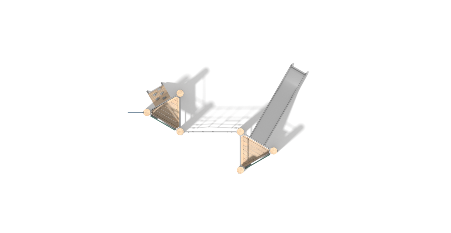 Матеріал стандартної комплекції: Міцна конструкція виготовлена зі сталі AISI304 Система з’єднувачів і затискачів, виготовлених із міцних алюмінієвих сплавів Опори виготовлені з натуральної деревини робінії Скелелазні зачепи, виготовлені із суміші мінеральних наповнювачів та кольорових поліефірних смол Дах, виготовлений із кольорового полікарбонату товщиною 12 мм Гірка виготовлена зі сталі AISI304 Панелі стін, виготовлені з кольорового тришарового поліетилену HDPE товщиною 15 мм Канати виготовлені з поліпропілену Кріплення стандартної комплектації: Бетонування конструкції в грунт на глибину 55 см. Додаткові опції: Міцна конструкція виготовлена зі сталі AISI304,очищеної методом піскоструминної обробки. Гірка виготовлена зі сталі AISI304.Лист товщиною 2мм. Робінія, пофарбована спеціальною водною фарбою, що швидко висихає, паропроникною, яка забезпечує напівглянцеве покриття. Панелі стін, виготовлені з кольорового тришарового поліетилену HDPE товщиною 15 мм мм найвищої якості, повністю вологостійкі та стійкі до ультрафіолетового випромінювання. Поліпропіленові канати типу PP-Multisplit зі сталевим осердям діаметром 16 мм |