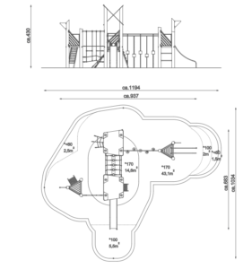 Матеріал стандартної комплекції: Міцна конструкція виготовлена зі сталі AISI304 Система з’єднувачів і затискачів, виготовлених із міцних алюмінієвих сплавів Опори виготовлені з натуральної деревини робінії Скелелазні зачепи, виготовлені із суміші мінеральних наповнювачів та кольорових поліефірних смол Дах, виготовлений із кольорового полікарбонату товщиною 12 мм Гірка виготовлена зі сталі AISI304 Панелі стін, виготовлені з кольорового тришарового поліетилену HDPE товщиною 15 мм Кріплення стандартної комплектації: Бетонування конструкції в грунт на глибину 55 см. Додаткові опції: Міцна конструкція виготовлена зі сталі AISI304,очищеної методом піскоструминної обробки. Гірка виготовлена зі сталі AISI304.Лист товщиною 2мм. Робінія, пофарбована спеціальною водною фарбою, що швидко висихає, паропроникною, яка забезпечує напівглянцеве покриття. Панелі стін, виготовлені з кольорового тришарового поліетилену HDPE товщиною 15 мм мм найвищої якості, повністю вологостійкі та стійкі до ультрафіолетового випромінювання. |