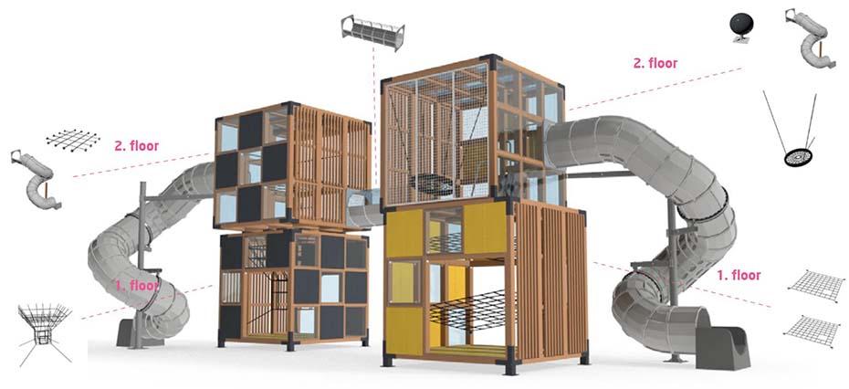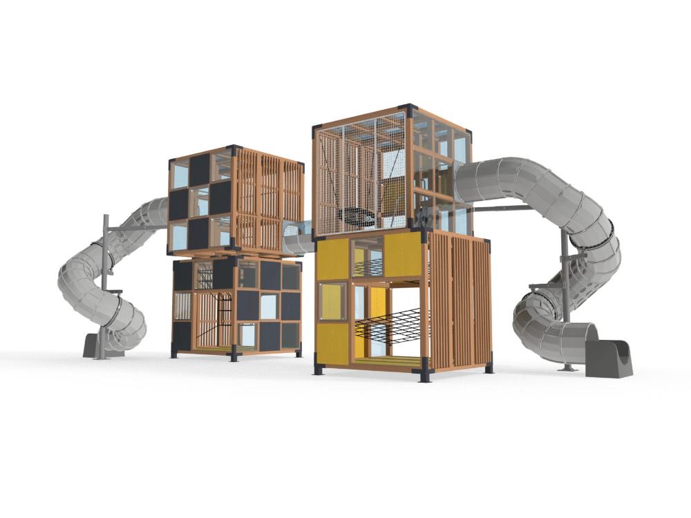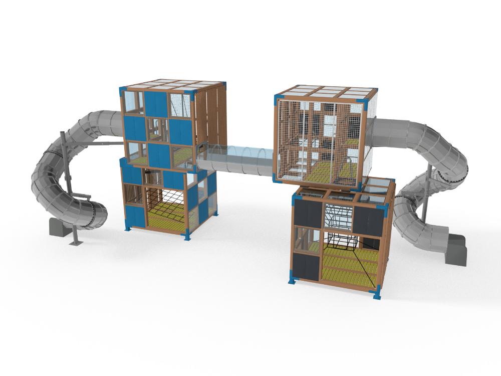 Перевага даного комплексу полягає у вертикальному розташуванні ігрових зон у великих вандалостійких «кубах». Особливістю комплексу є скорочена зона безпеки – всього 1 метр, а також вандалостійкі матеріали підлоги і стін.