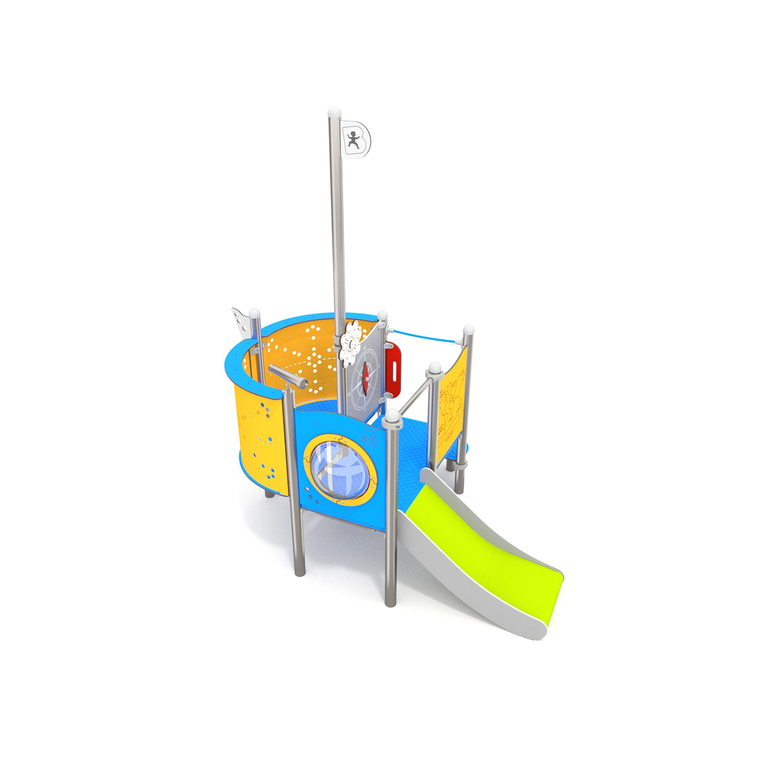 Матеріали стандартної комплектації: Несуча конструкція: нержавіюча сталь. Гірка: поліестер, поліетилен. Кріплення стандартної комплектації: Бетонування конструкції в грунт на глибину 55 см. Додаткові опції: HPL – стінки та платформи. Канати виготовлені з поліпропілену пп-мультиспліт зі сталевим сердечником. Перфоровані стінки виготовлені зі сталі з порошковим обробленням. Усі гвинти, що піддаються атмосферним впливам, виготовлені з нержавіючої сталі. |