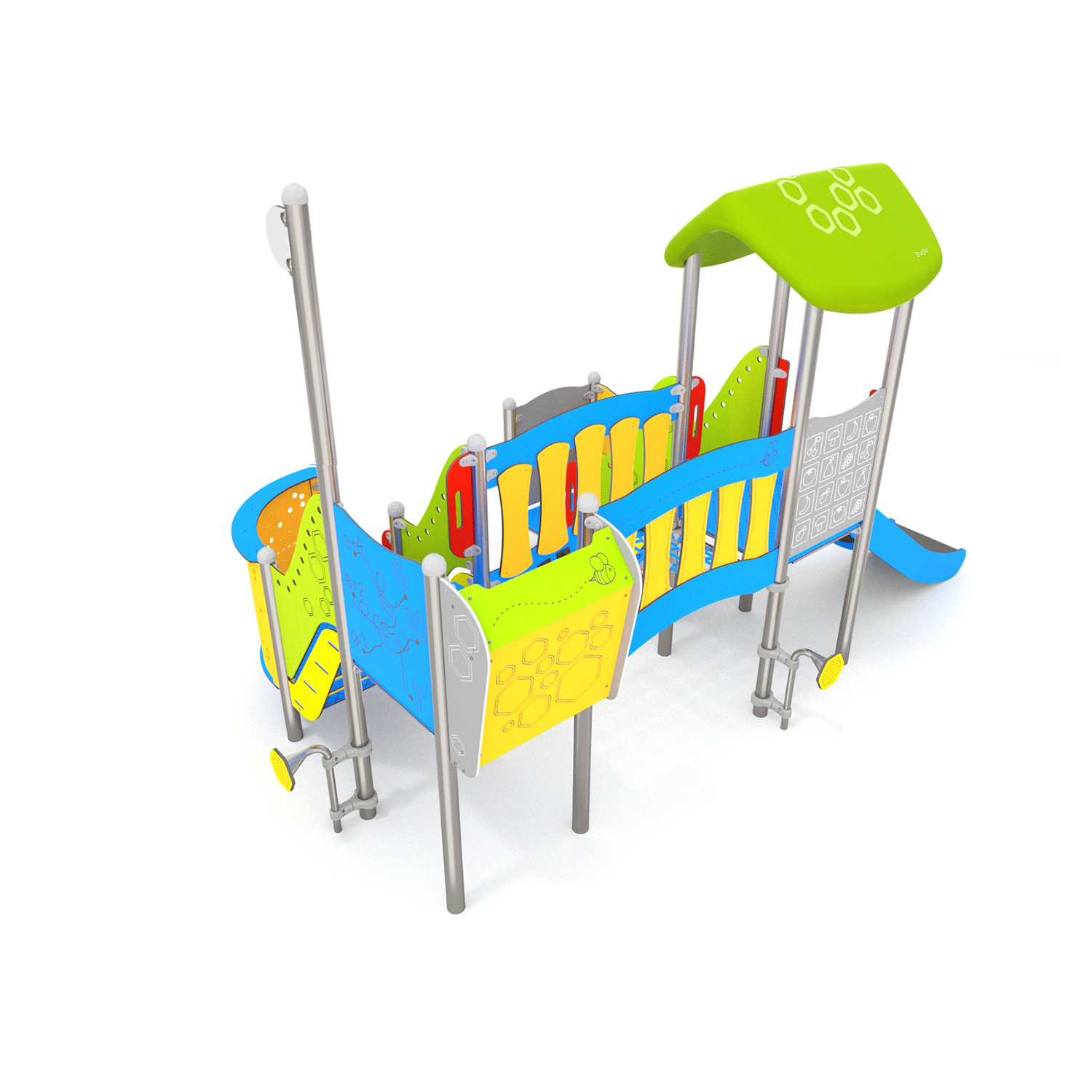 Матеріали стандартної комплектації: Несуча конструкція: нержавіюча сталь. Гірка: нержавіюча сталь, поліетилен. Кріплення стандартної комплектації: Бетонування конструкції в грунт на глибину 55 см. Додаткові опції: HPL – стінки та платформи.1 Перфоровані стінки виготовлені зі сталі з порошковим обробленням. Дахи виготовлені методом ротомоулдінгу типу PE. Усі гвинти, що піддаються атмосферним впливам, виготовлені з нержавіючої сталі. |