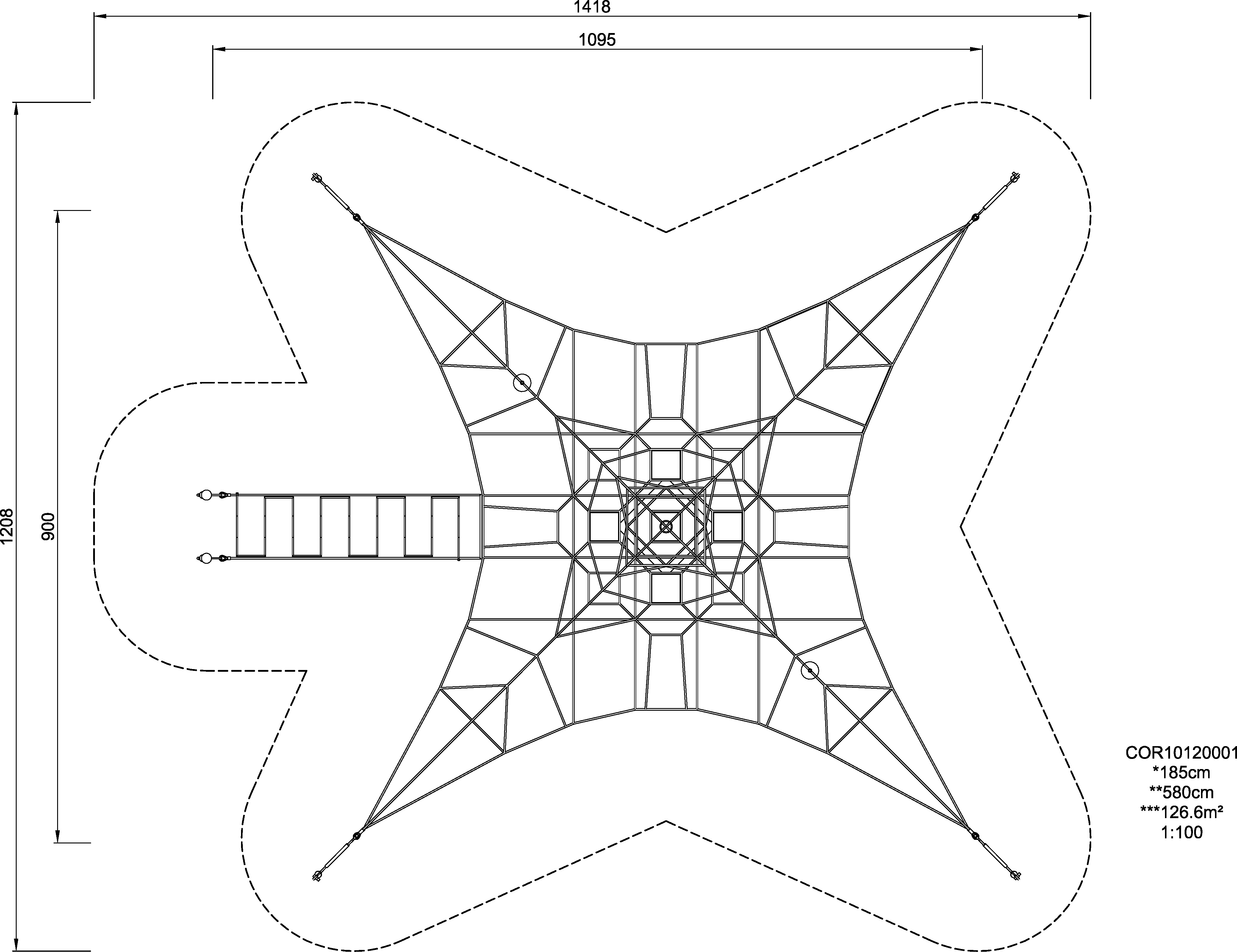 Мережа у формі піраміди із пружною мембраною. Монтується в грунт, глибина 110 см. Чудово підходить для дитячих розваг та, одночасно, тренує і розвиває силу, спритність, координацію рухів та почуття рівноваги.