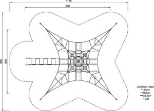 Мережа у формі піраміди. Монтується в грунт, глибина 110 см. Чудово підходить для дитячих розваг та, одночасно, тренує і розвиває силу, спритність, координацію рухів та почуття рівноваги.