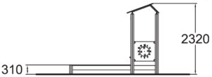 Будиночок виконаний у вигляді вежі з дахом. З лівого боку від входу в будиночок розташоване вікно, врізане в стінну панель. Стінова панель виконана з ламінату високого тиску. Усередині будиночка встановлена панель для логічних ігор. Праворуч від входу з зовнішньої частини будиночка також закріплені 2 логічні панелі, розташовані один до одного під кутом 90 градусів.