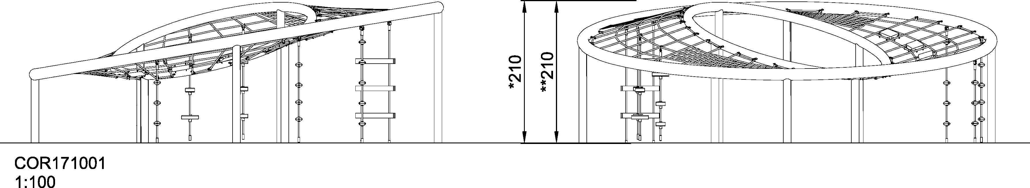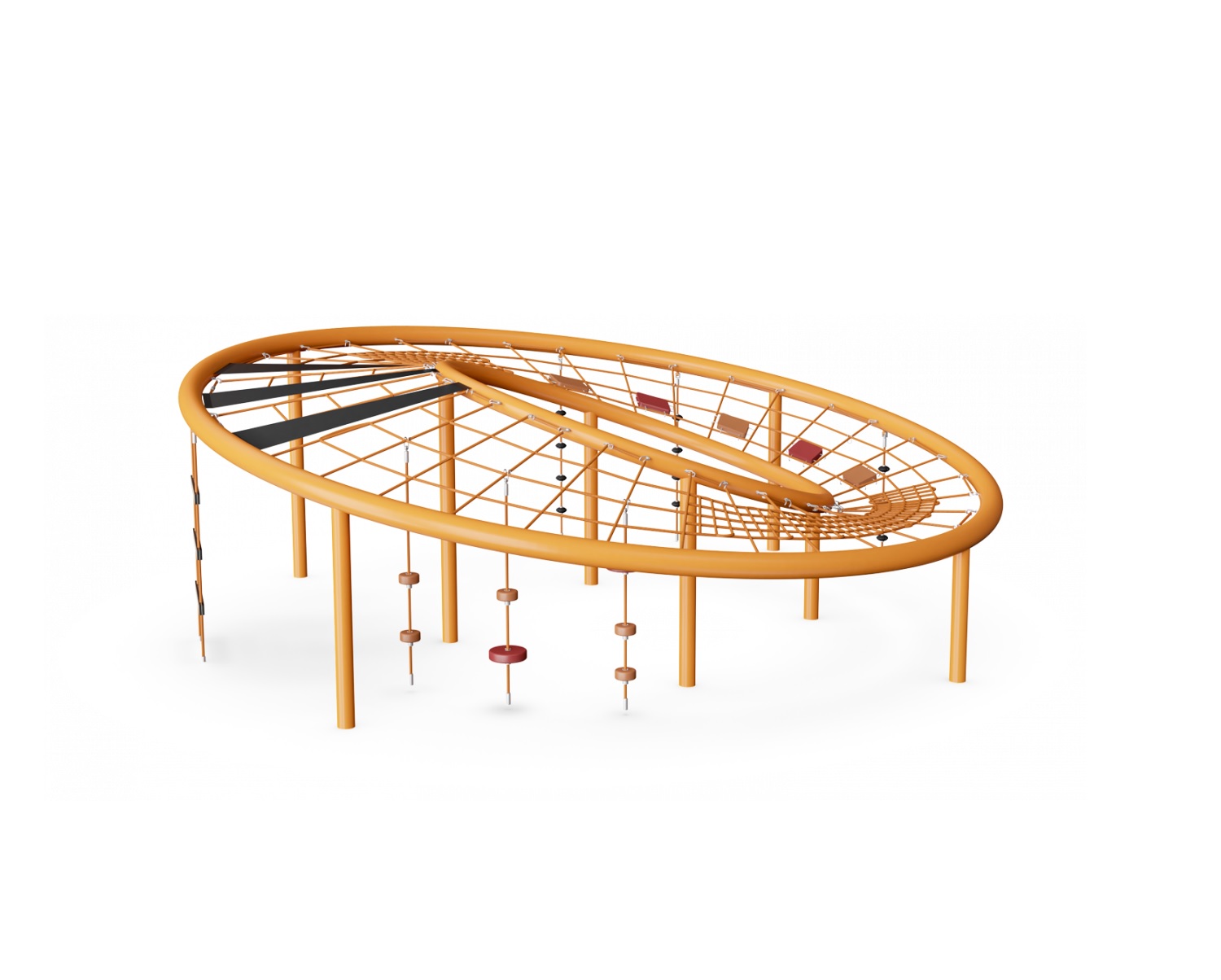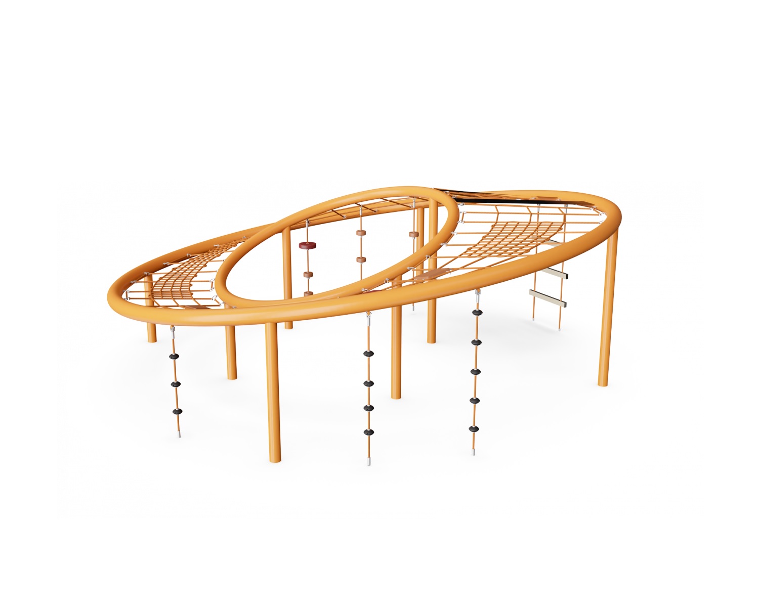 Монтується в грунт, глибина 110 см. Колір оранжевий. Комплекс чудово підходить для дитячих розваг та, одночасно, тренує і розвиває силу, спритність, координацію рухів та почуття рівноваги.