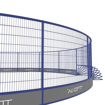Комплект огородження виготовлений на 100% з металу. Рамки секцій зварюються з металевої профільної труби які попередньо пройшли вальцювання до необхідного радіусу. У готові рамки інтегрована металева антивандальна сітка з пластин і дроту. Міцна і надійна конструкція дозволяє протистояти інтенсивній експлуатації (вандалізму) в громадських місцях. Всі деталі проходять піскоструменеву обробку високо-абразивним сипучим матеріалом і мають подвійне порошкове покриття в стандартних кольорах або за домовленістю із замовником. Це гарантує тривалий блиск, стійкість кольору і забезпечує особливо тривалий захист від корозії.