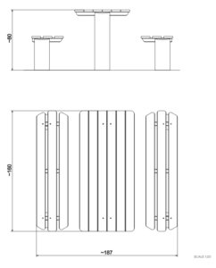 Матеріали стандартної комплектації: Лавка повністю виготовлена з натуральної деревини робінії Елементи конструкції виготовлені зі сталі ASISI 304 Кріплення стандартної комплектації: З бетонуванням в грунт на глибину 55 см |